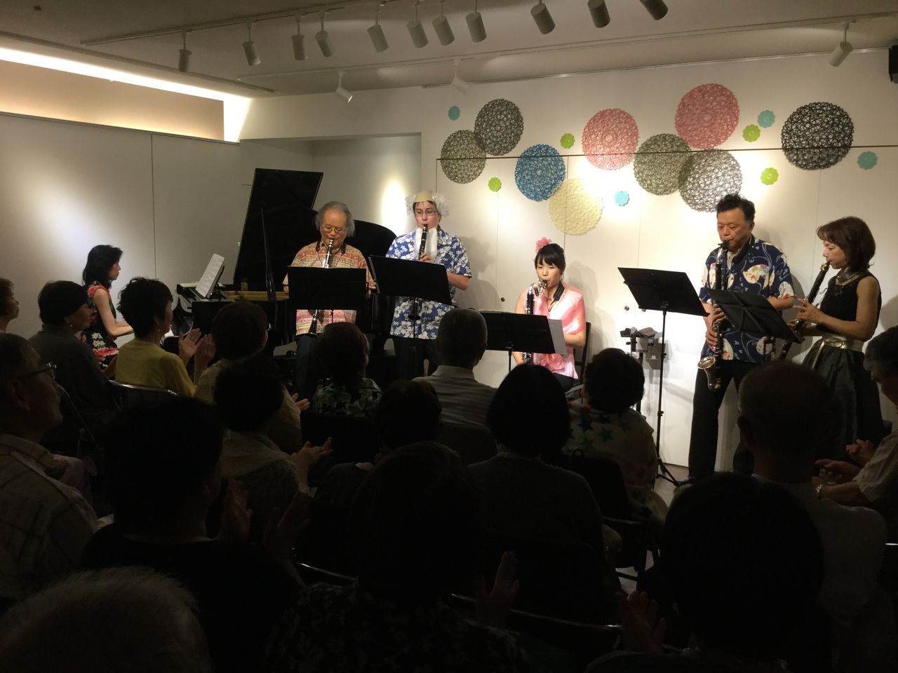 昨年は4人のクラリネットでしたが、今回も「肩寄せ合ってするから大丈夫」とクラリネット5人とピアノのコンサートです。小松先生を慕って集まったスピリトのメンバーですがなんとも微笑ましい。